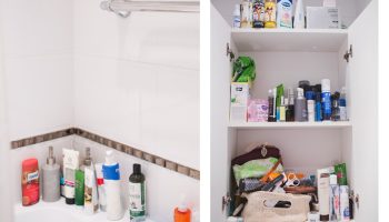 Eksperci są zgodni: „Nie przechowuj zbyt wielu produktów w kabinie prysznicowej. Większość mydeł gromadzi brud, a zbyt wiele butelek utrudnia sprzątanie”.